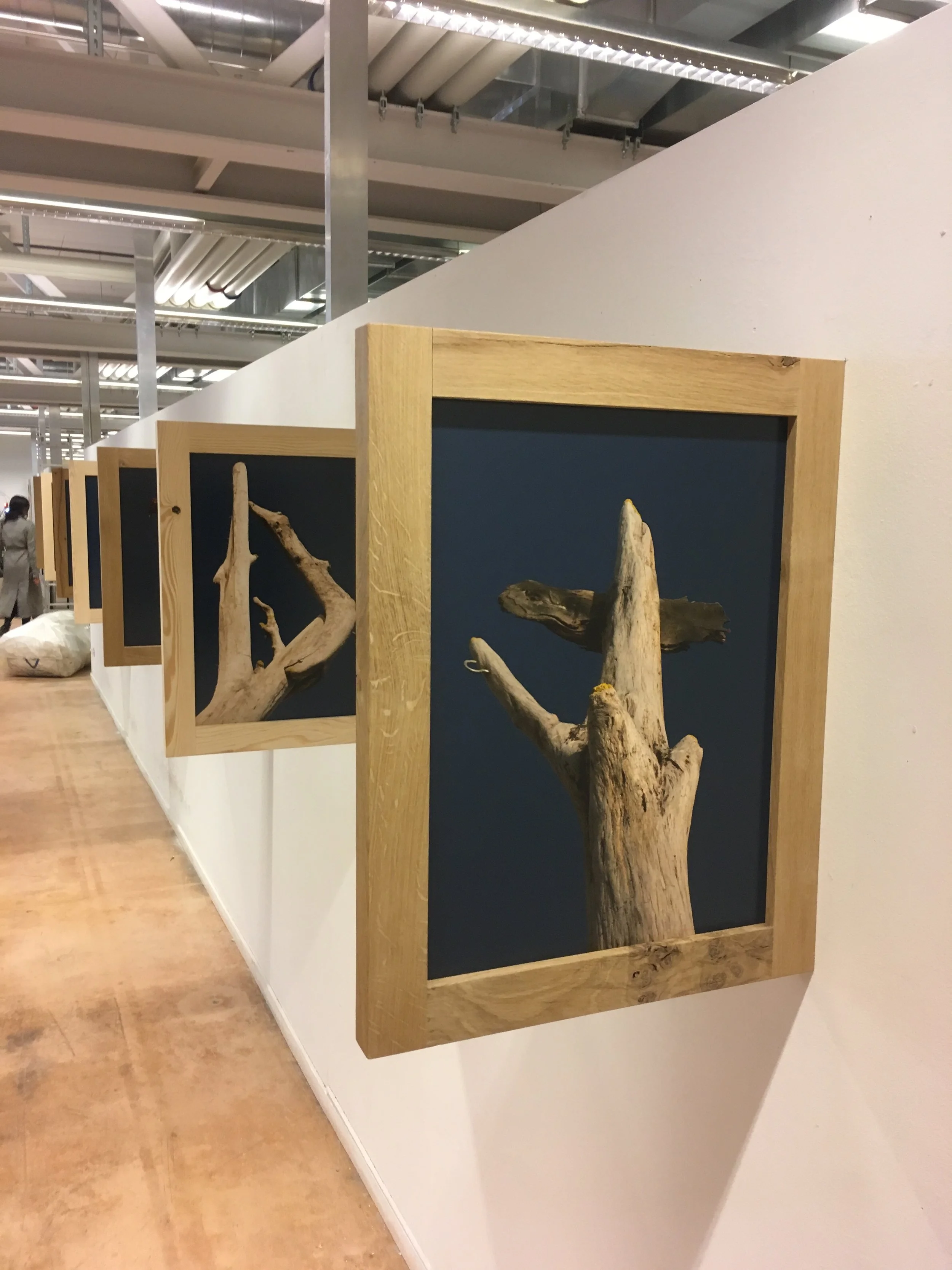 Pour ce projet, nous avons conçu et fabriqué sur mesure une série de cadres en bois destinés à l’exposition d’un artiste.
