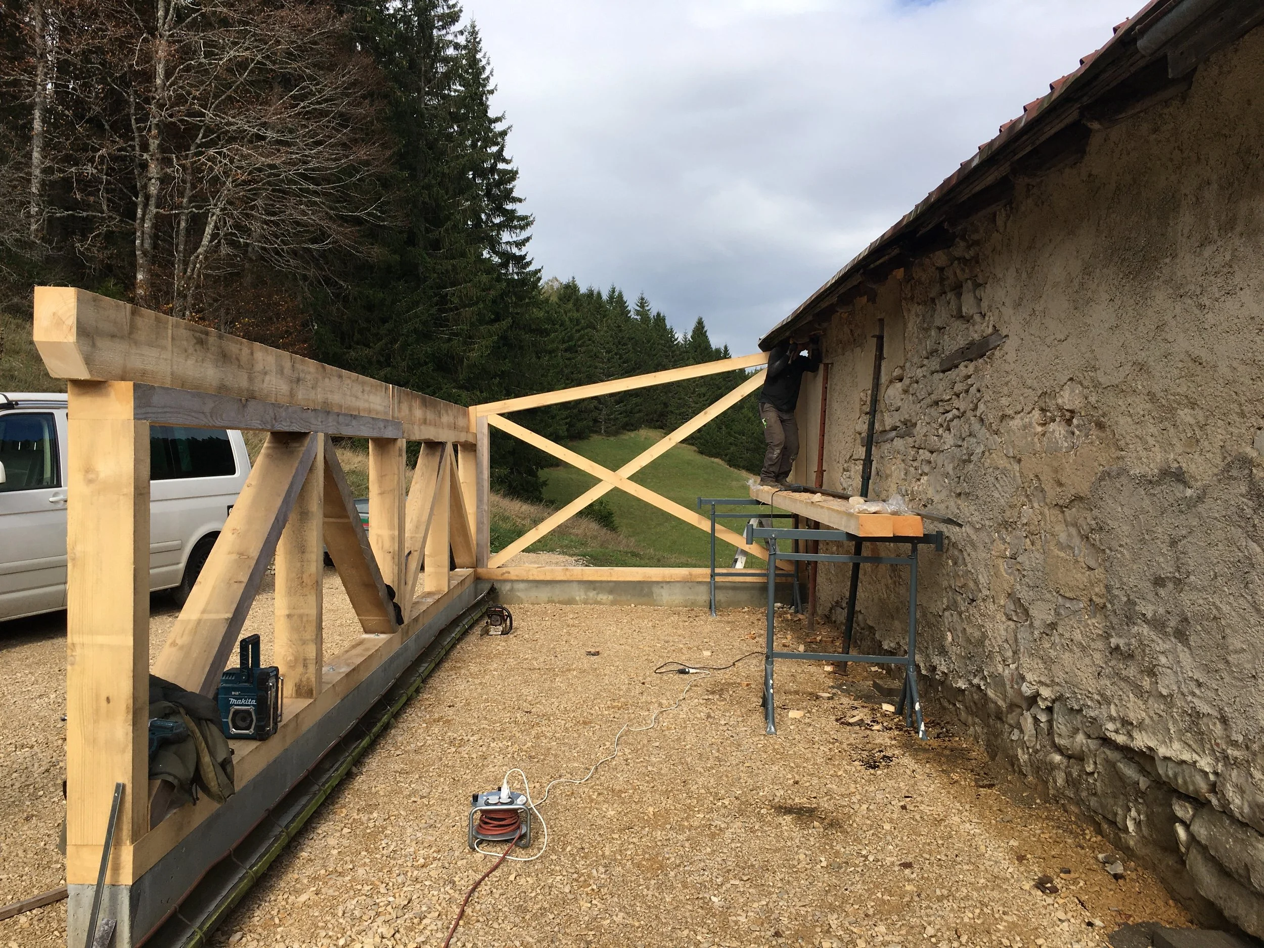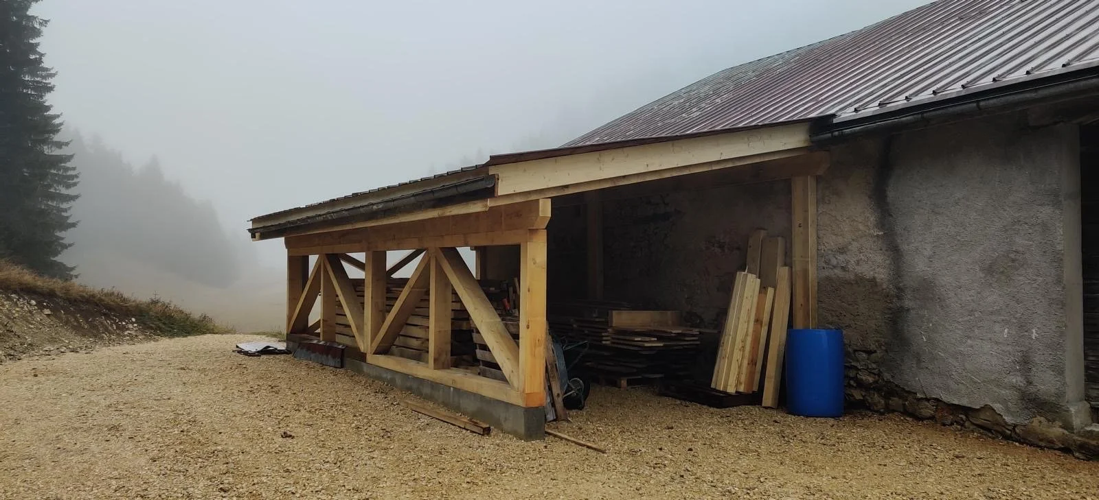 Conception et construction complète d’un couvert sur mesure pour abriter des véhicules, incluant la création de structures en béton, de colonnes et murs en bois, ainsi que la confection du toit. Un projet alliant robustesse, fonctionnalité et esthétisme, parfaitement adapté à son usage et à l’espace disponible.