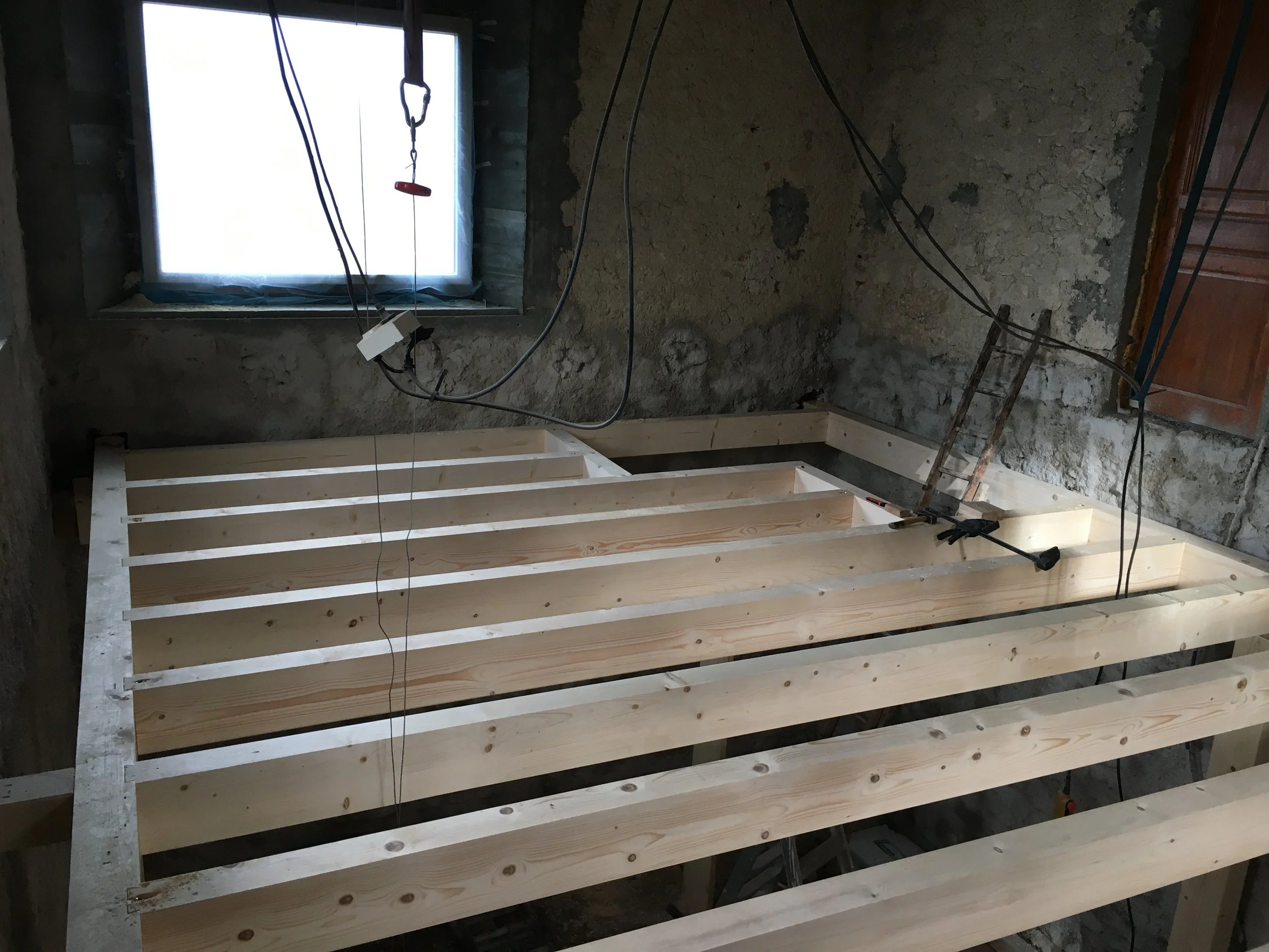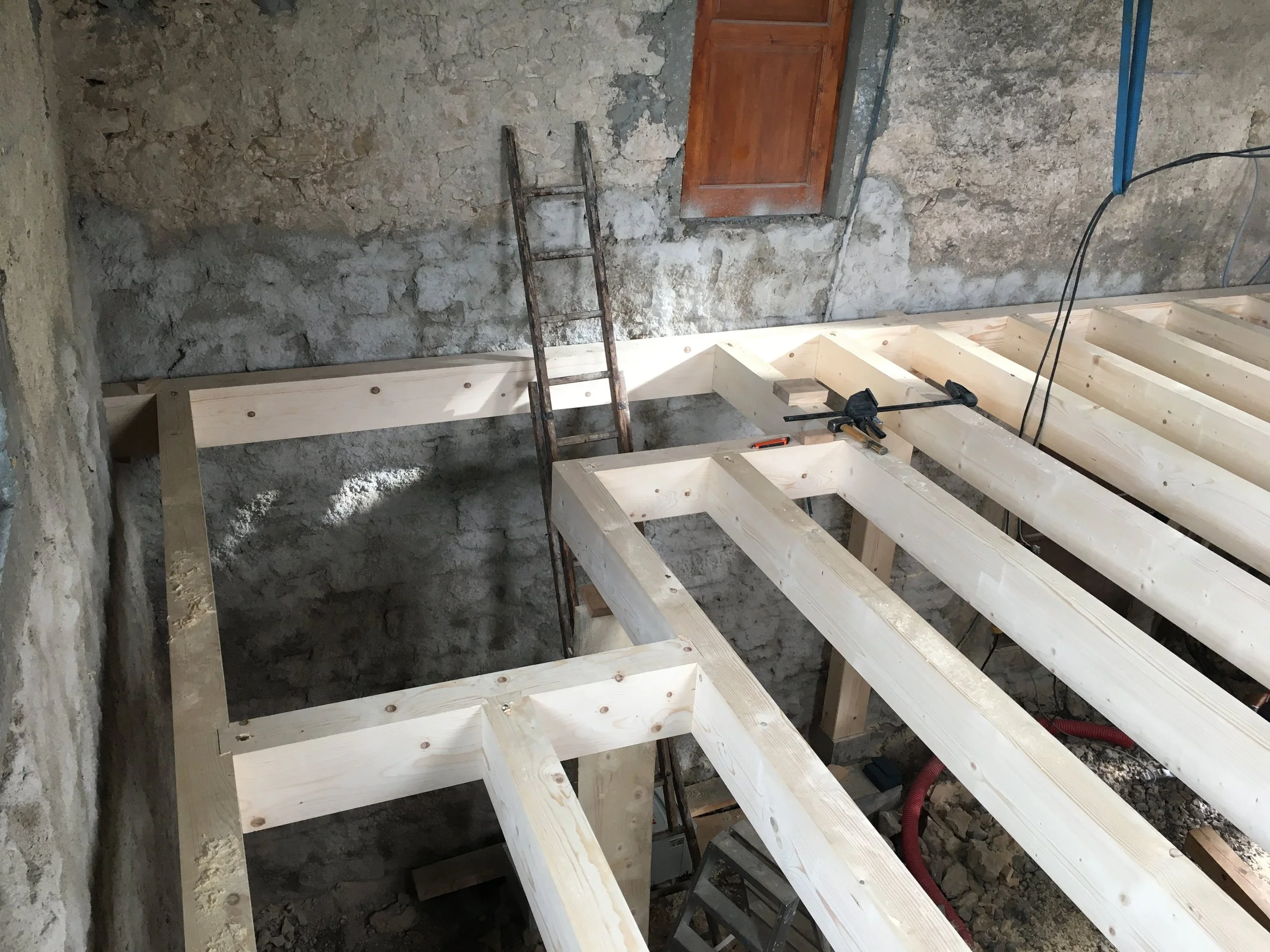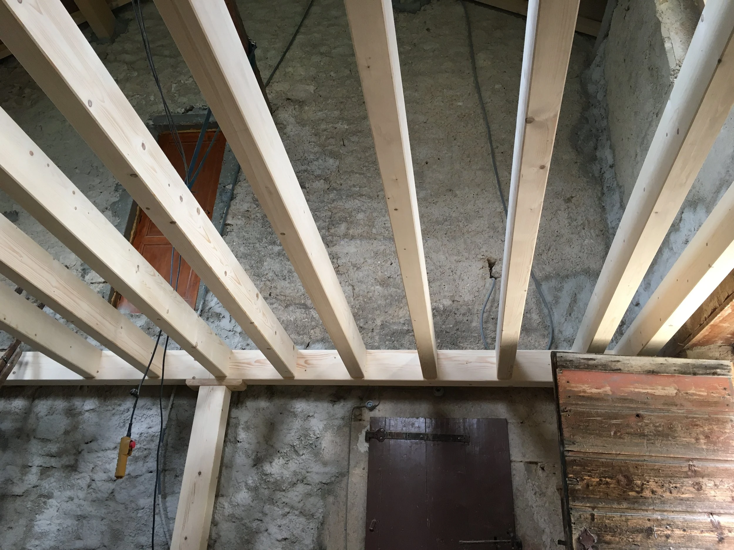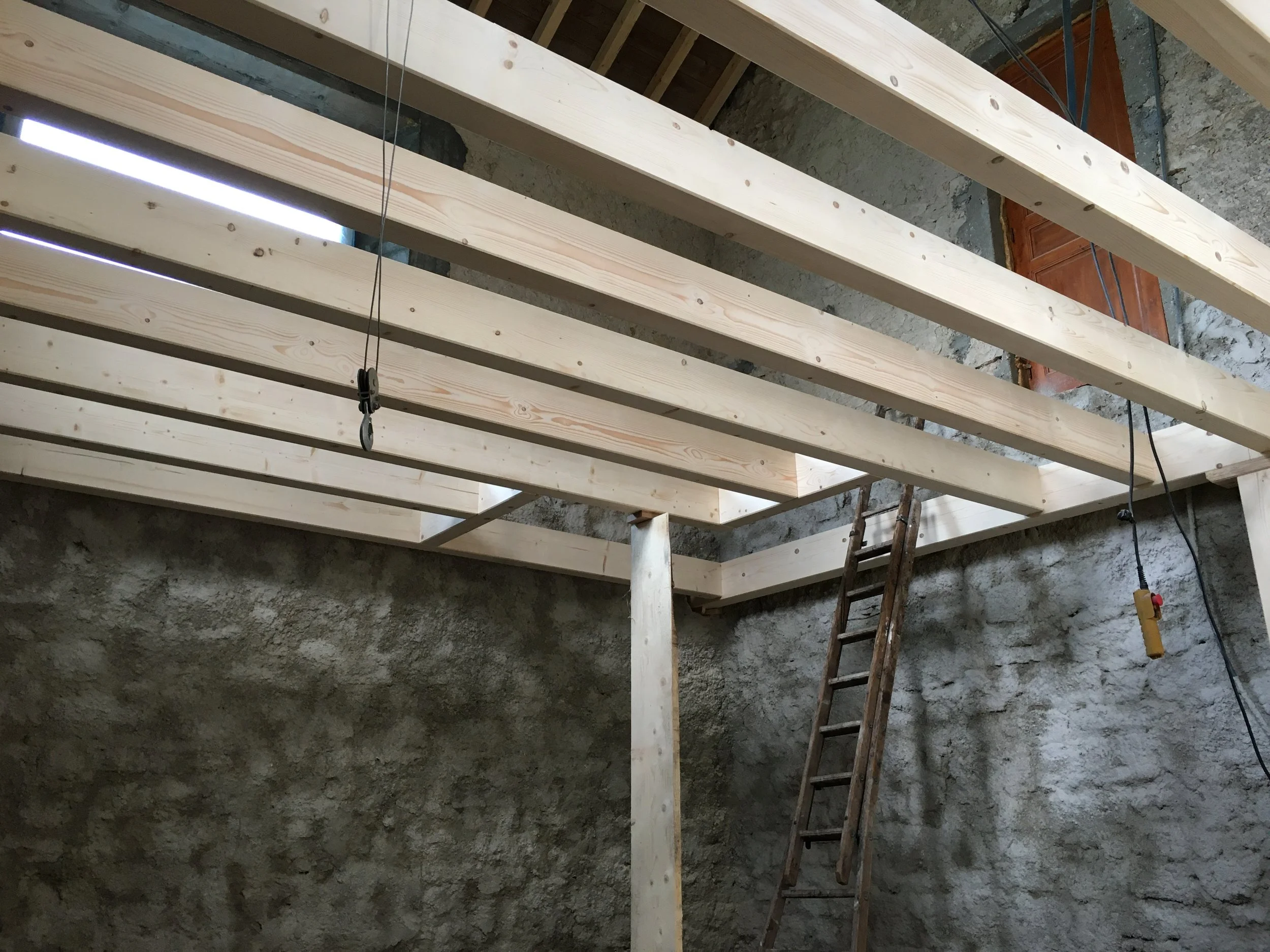 Conception et pose d’un solivage en queue d’aronde entièrement réalisé sur mesure. Ce travail de charpente allie précision et savoir-faire traditionnel, offrant une structure solide, esthétique et parfaitement ajustée à l’architecture existante.